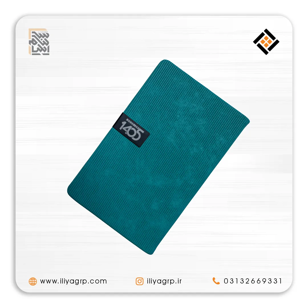 سررسید ۱۴۰۵ ایلیا با جلد مخمل کبریتی فیروزهای جذاب، بافت راهراه عمودی نرم و لوکس، رنگ زنده و خاص. سالنامه ۱۴۰۵ شیک و متفاوت، انتخاب بانوان مدیر، پزشکان، طراحان و بهترین هدیه سازمانی چشمنواز و پرانرژی.